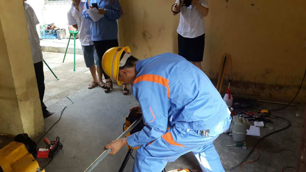 燃氣器具安裝比賽中,選手不畏酷暑,認真操作
