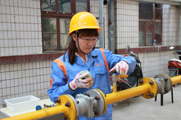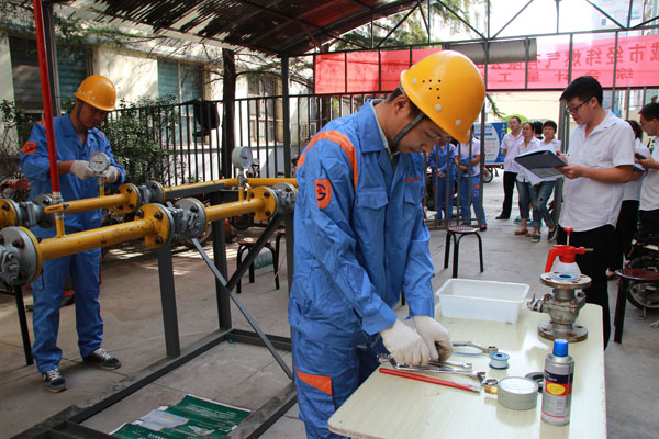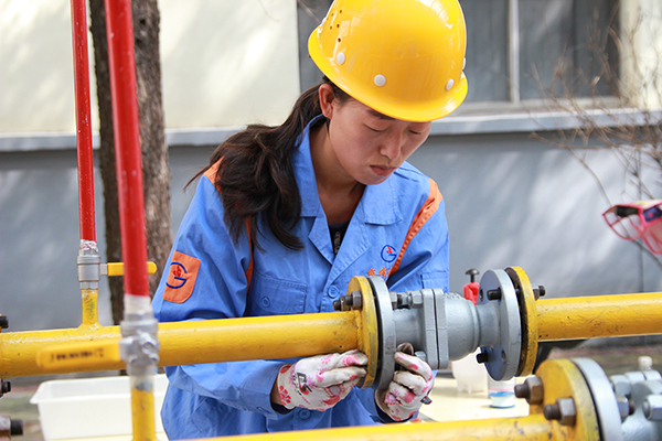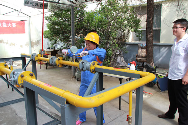 燃氣具安裝維修工比賽中,女選手技術(shù)毫不遜色