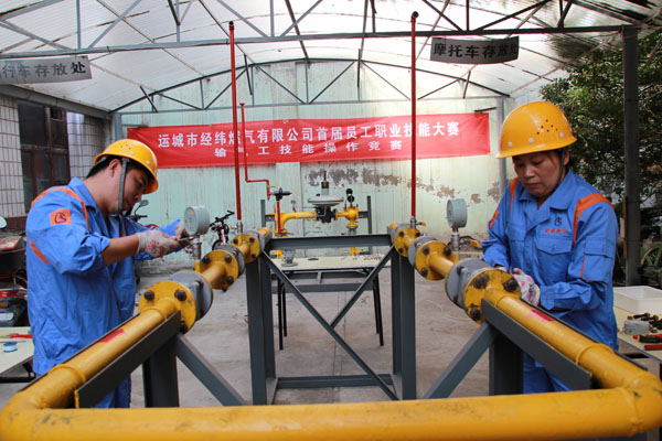 輸氣工比賽中,女選手技術(shù)也毫不遜色
