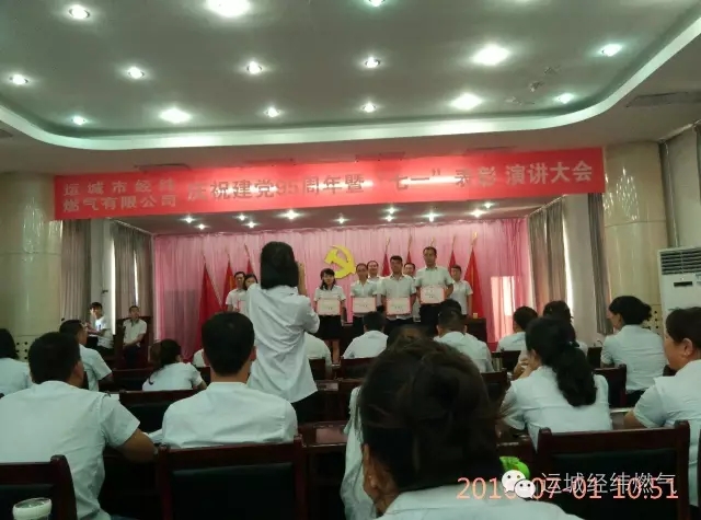 7月1日上午,經(jīng)緯燃?xì)夤驹谒臉菚h室舉行了紀(jì)念建黨95周年暨“七一”表彰 演講大會。經(jīng)緯燃?xì)夤救w黨員、入黨積極分子、入黨申請人、中層干部參加了會議。